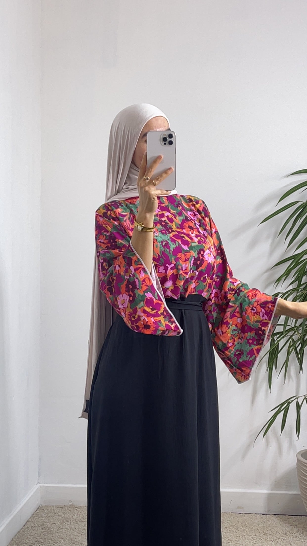 Robe longue à manches longues simple avec cordon sur les côtés pour attacher derrière, Couleur noir et multicolore, Tissu, moitié coton, fluide non transparente et crêpes, matière légère idéales pour printemps été, Taille unique, convient de la taille M/XL Longueur de la robe 1,45 cm